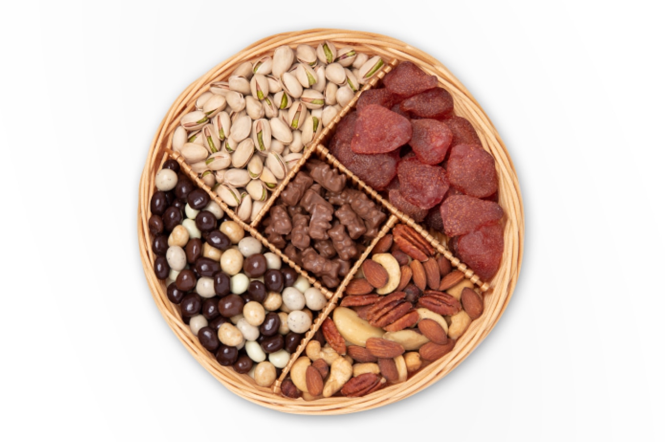 See snack offerings here ! Offerings include the best of our premium nuts, dried fruits, chocolates, sweets, and snacks. Classic Gift Tray recipients can choose from 50 of our core snack offerings, and Premium Gift Tray recipients can choose from 130+ of our core and gourmet snack offerings.